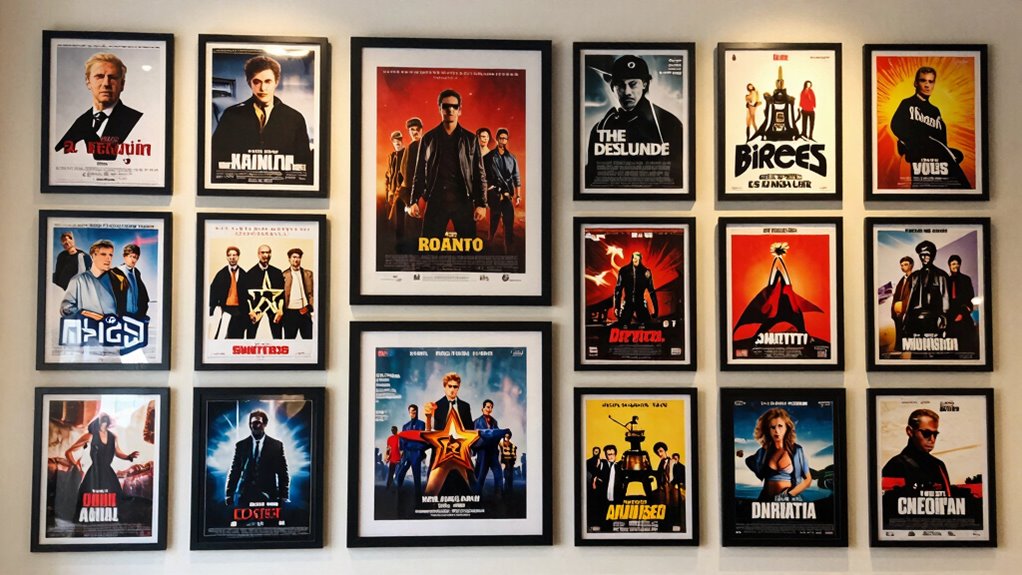 Mixing different styles in your movie poster wall can create an engaging and dynamic display, but it requires careful balance. To achieve harmony, focus on elements like color coordination and texture contrast. Here are four tips: