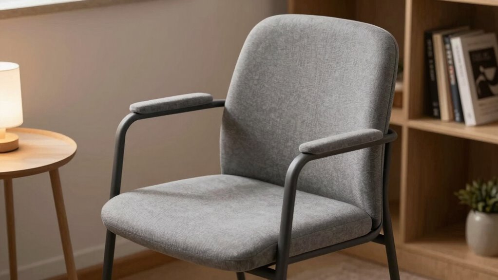 Your comfort hinges on choosing the right chair height, like finding the perfect dance partner. An ergonomic support is essential—you want your feet flat on the floor and knees at a 90-degree angle. A well-chosen height balances aesthetic appeal with function, preventing strain and making your small space feel cozy yet comfortable. Prioritize adjustable options to customize and maintain your comfort effortlessly.